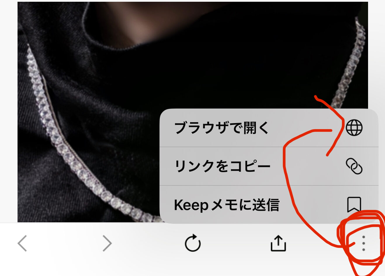 スマホの右下の縦3つ並んだ添「・」とか「-」をタップして「ブラウザで表示」から、ブラウザ表示させると、ページへ飛べます